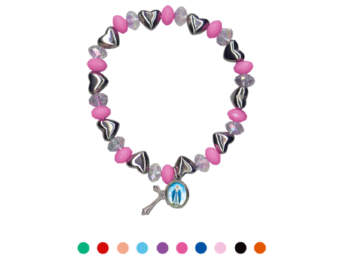 Bracciale elastico con cuori in metallo confezione da 50 pz. grani 8mm