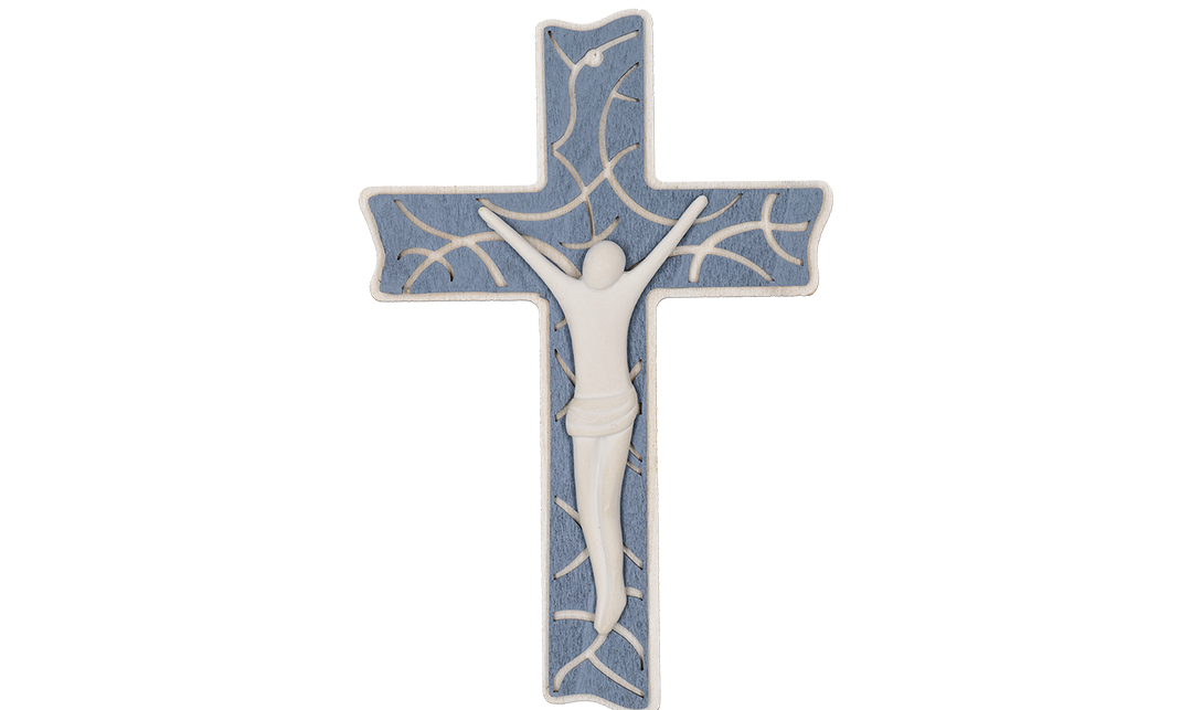 Croce sagomata effetto ceramica con dettagli in argento