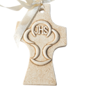 Croce sagomata effetto ceramica con dettagli in argento