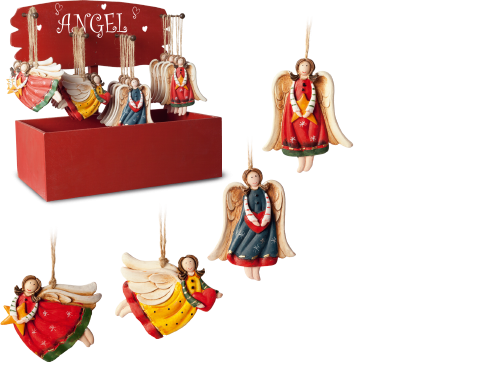 Espositore con 43 angeli in resina dipinti a mano 10,5 cm